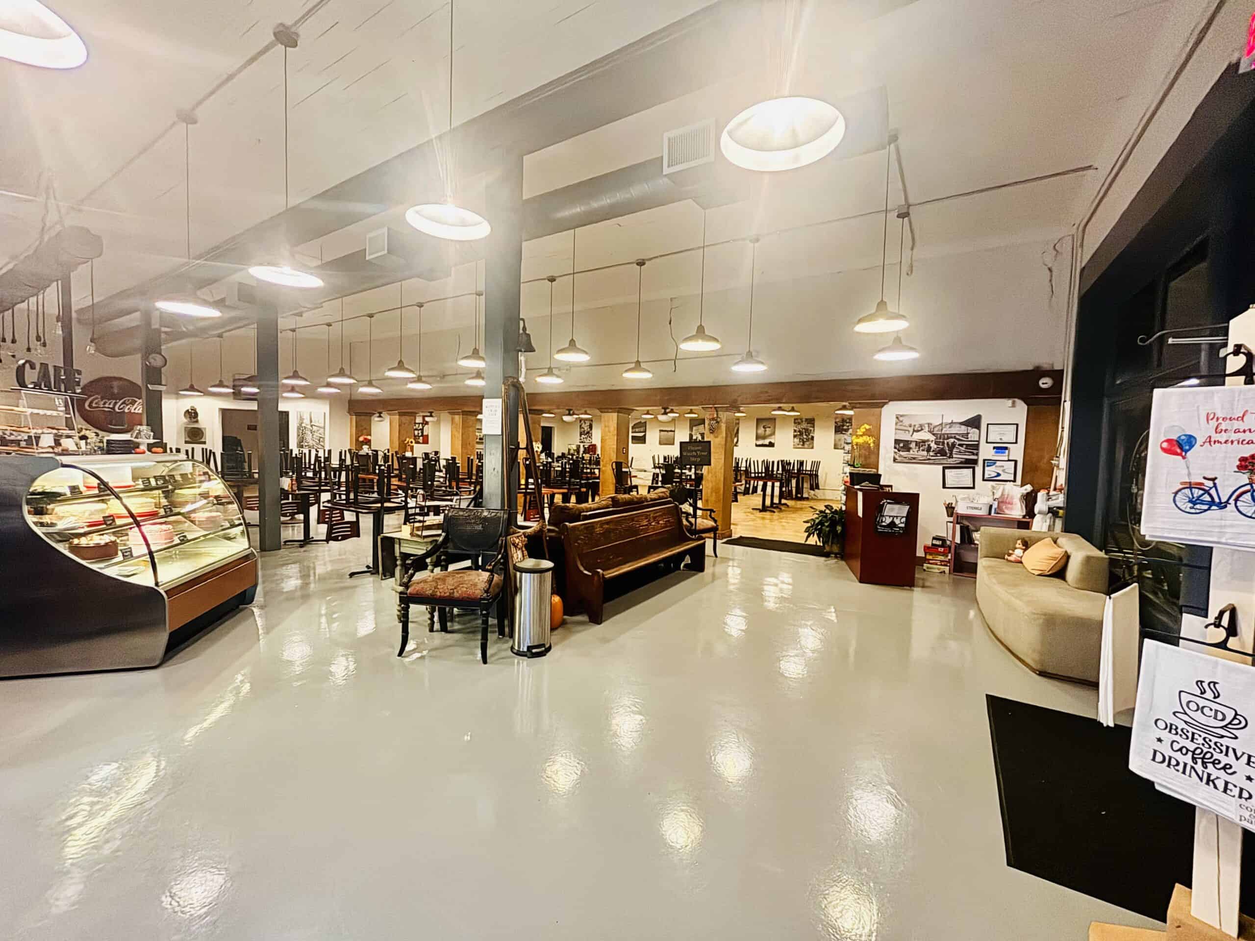 The restaurant features a main dining area, separate space for private gatherings, retail shop space, kitchen restrooms and storage rooms.